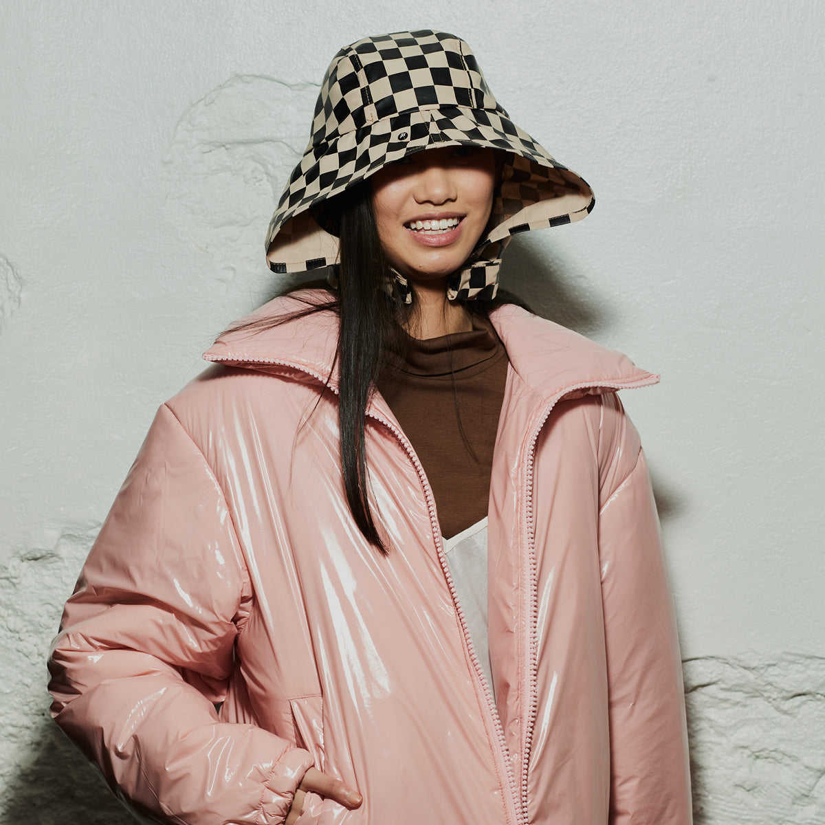 A unisex water repellent rain or sun hat with built- in slap band named after the Greek name, protector of the people.